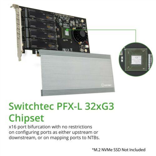Quad M.2 M-key NVMe Slot PCIe 3.0 x16 Bifurcation Riser Controller Card Non-RAID