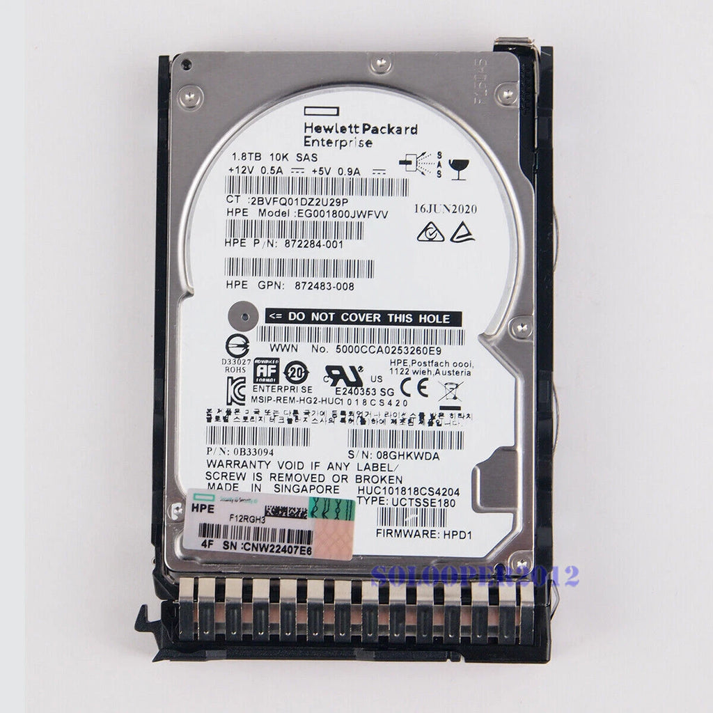 HP 1.8TB 872481-B21 872738-001 SAS 10K 12Gb/s 2.5" SC ENT 512E DS FIRMWARE HDD