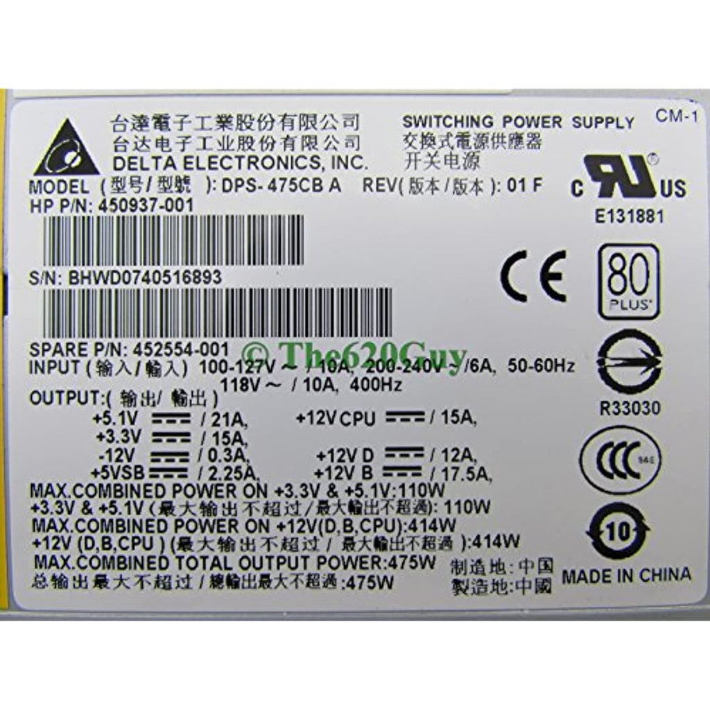 HP Power HP XW4600 WS 475W Power Supply 80 PLUS Certified 450937-001 Delta DPS-475CB A